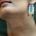 Made with thermal polymer, featuring turquoise semi-precious stones and set with sterling silver hooks.