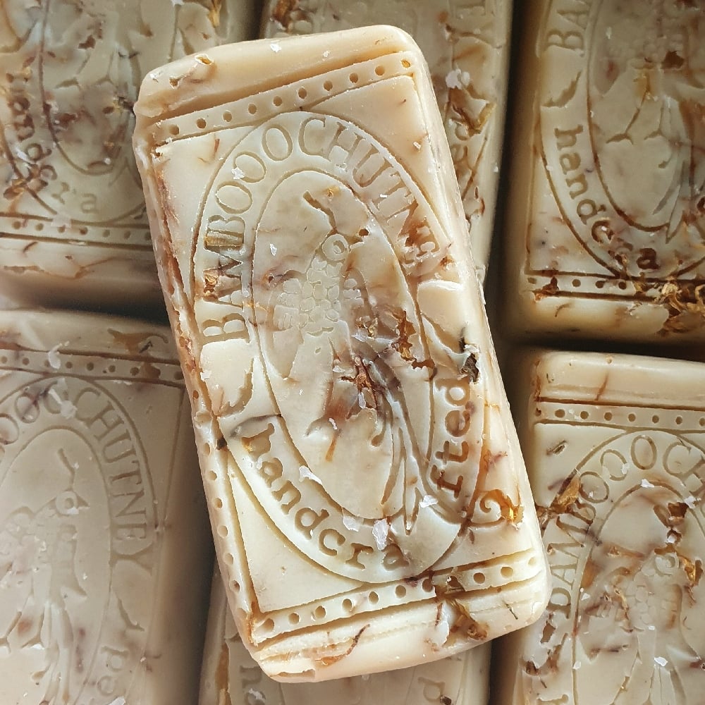 BAMBOOCHUTNEY’S LUXE SOAP BAR are handcrafted in small batches and under artisan conditions. Soap made this way naturally produces a skin nourishing, high glycerin content product. To achieve the longest use from your BAMBOOCHUTNEY LUXE SOAP BAR, please allow it to dry between each use. If left standing in water, your BAMBOOCHUTNEY LUXE SOAP BAR will break down quickly. As with any soap product, steer clear of your eyes and check the ingredients list if you have allergies. Do not continue use if an allergic reaction occurs. For external use only.